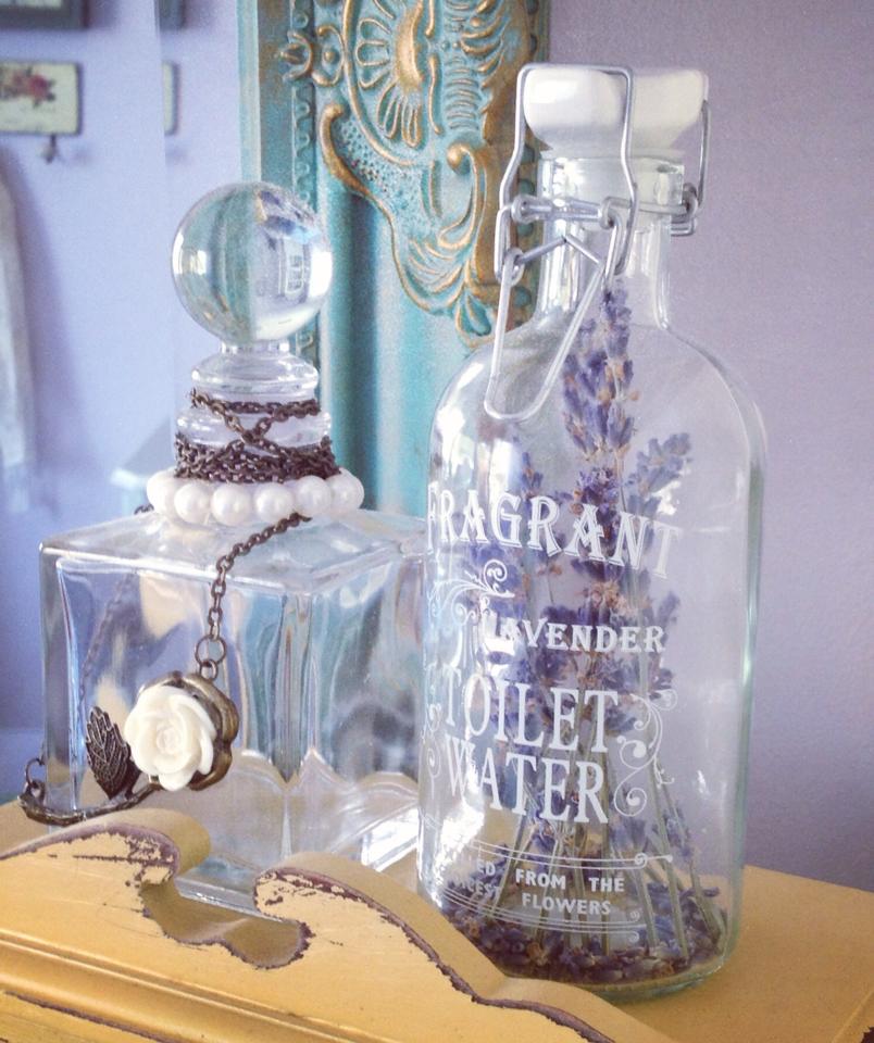 To add some rustic charm to my vanity, I filled up my apothecary bottle with some lavender