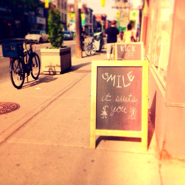 Since adopting my new socially responsible habit of leaving my phone in my bag while walking, I’ve re-connected with real life which is more “real time” than any newsfeed popping up on Facebook. During my technology-free city strolls, that’s when I noticed the city’s interaction: welcoming, inviting, inspirational, friendly, bright messages scattered on windows, walls, billboards, sidewalks or fences. The city is saying hello, and we’re missing out.