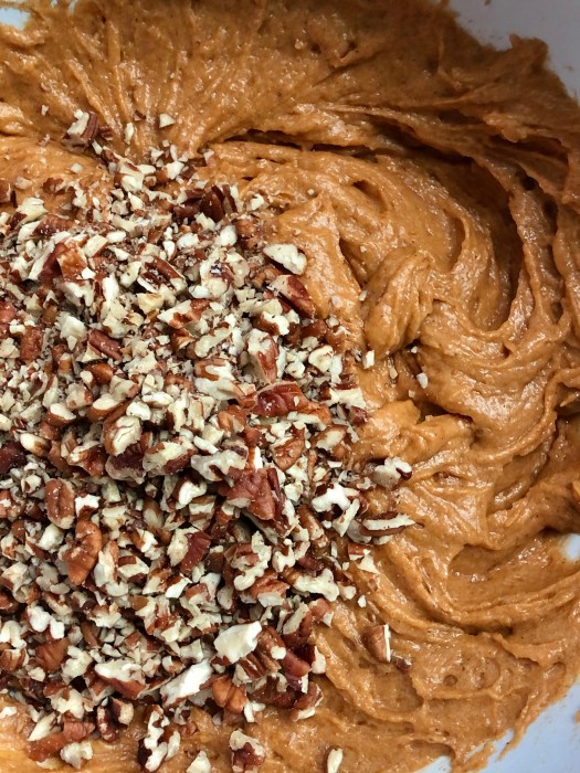 The original recipe from fellow blogger McGee Travel Tales called for chocolate chips, but since I didn’t have any, I used chopped pecans instead. I figured Pecans + Pumpkin = All The Fall Feels. Plus, substituting with pecans (or nuts in general) adds a well-balanced bite to a very soft cookie texture.