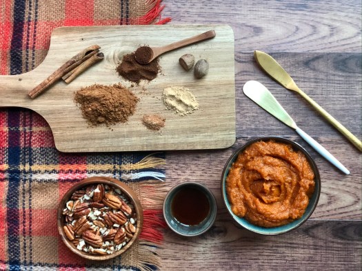 This recipe has a such a cozy spice profile. It’s exactly what October would taste like. It’s got cinnamon, ginger, nutmeg, cloves, vanilla, and of course, pumpkin purée.