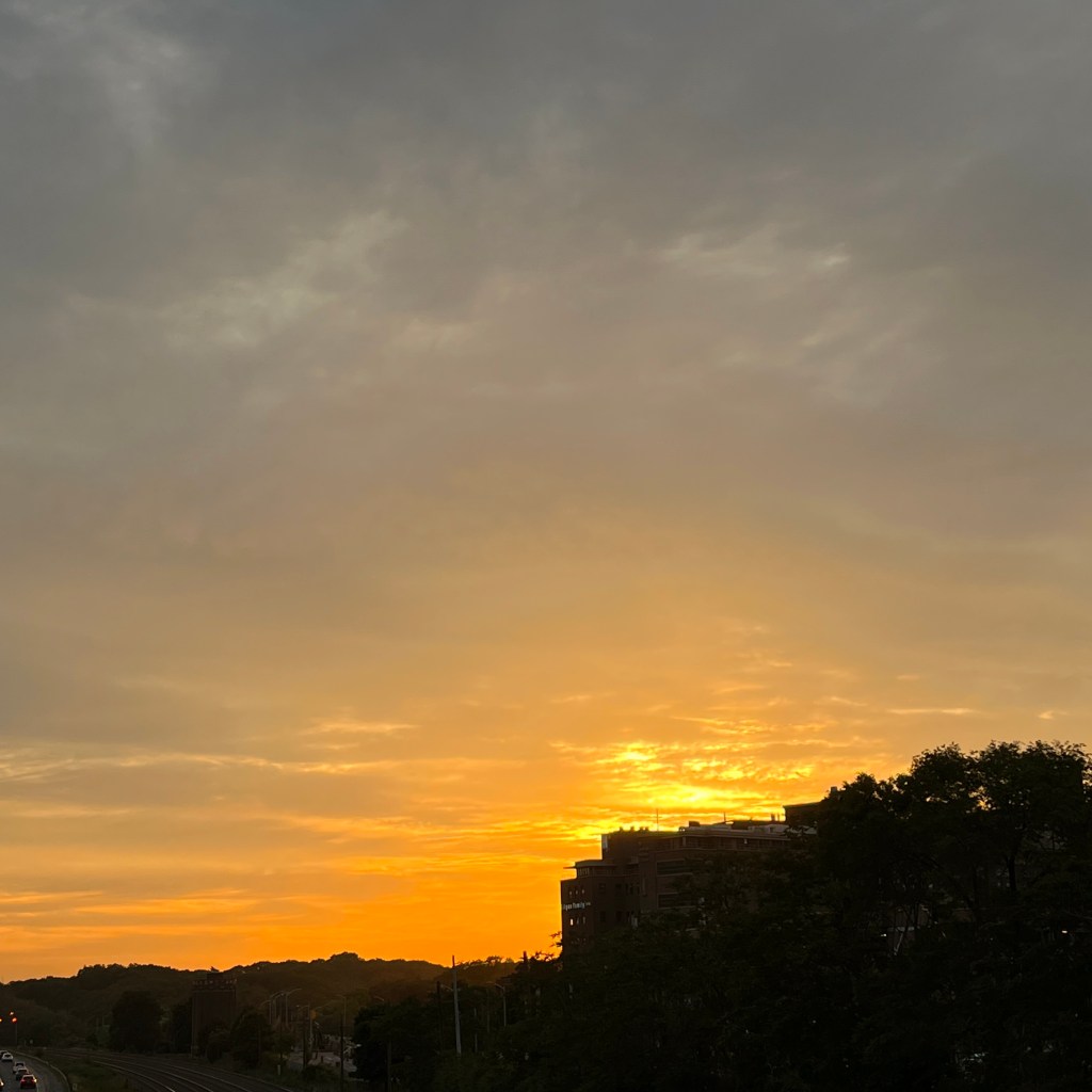 We reached the end of the street and turned the corner heading west, and there she was. Glowing, beaming in gold light. Setting up for her grand departure, that somehow felt more like a debut.