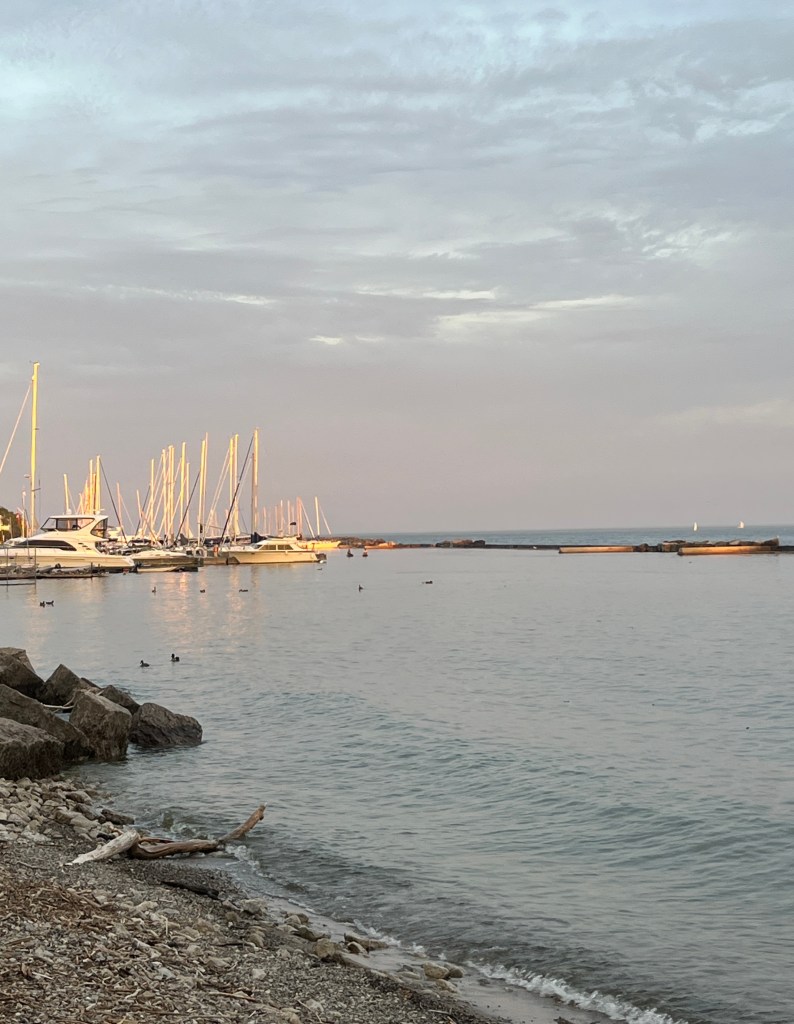 But the skies looked cloudy and smoggy. We were doubtful we’d even get a sunset. As we we cut through the street to head down towards the lake, we were proven wrong. I spotted a coral glow touching the peek of a white Victorian roof. I smiled at the confirmation that we’d get a sunset.