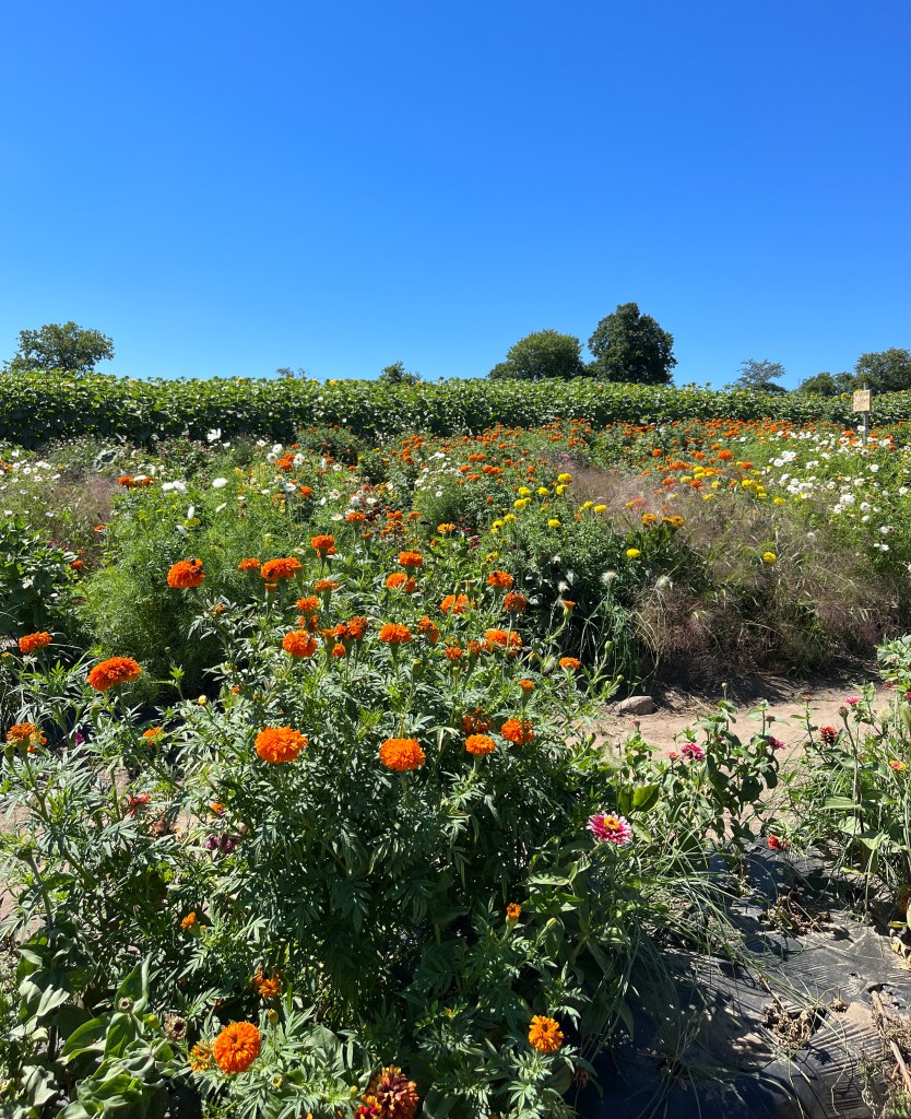 It was the quintessential “Nahya’s idea of a perfect summer” day. Sunshine, a field of flowers and farm fresh food and snacks to enjoy onsite? Tell me what could be better!
