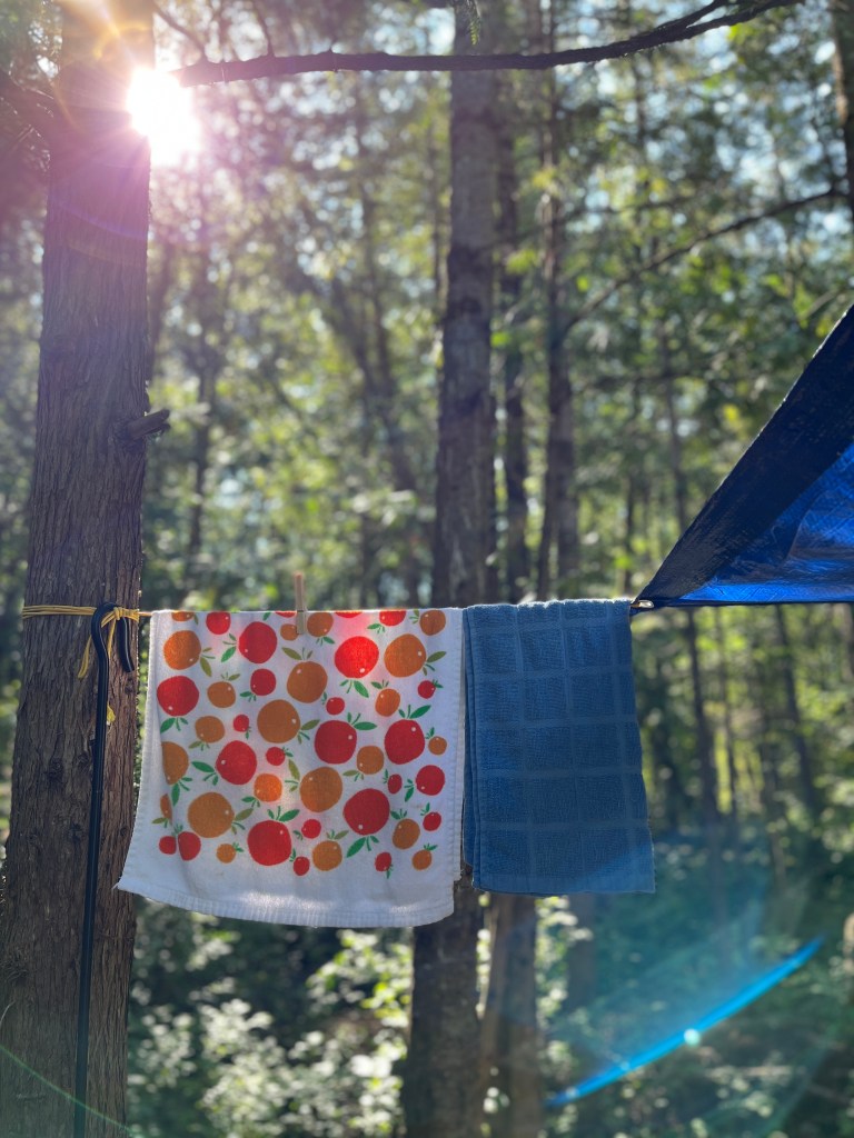Hang to dry clothesline, morning journaling, campfire reading, making Heavenly Cream tea, and having all the time in the world.