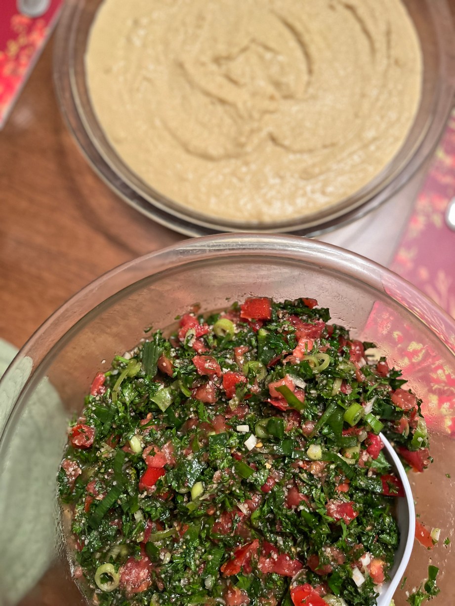 My parents had a Lebanese menu to be made once we got home, and I couldn’t wait to use the fresh tomatoes, corn, eggplants and green onions that we picked from the market. I really missed my parents’ kitchen.