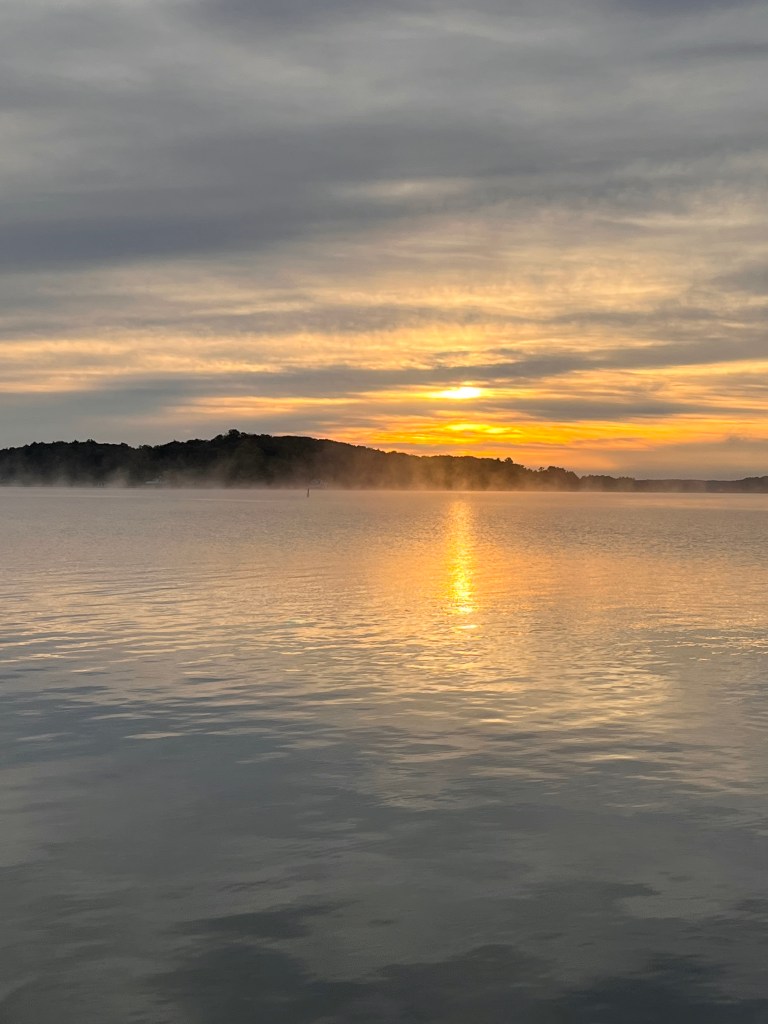 The mist floated off the sleepy lake, and patches of red appeared on the trees across from me. The seasons are shifting, and so am I.