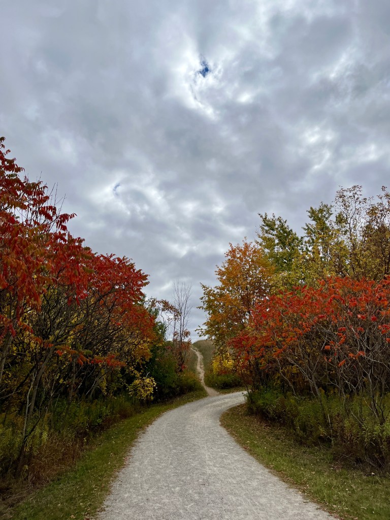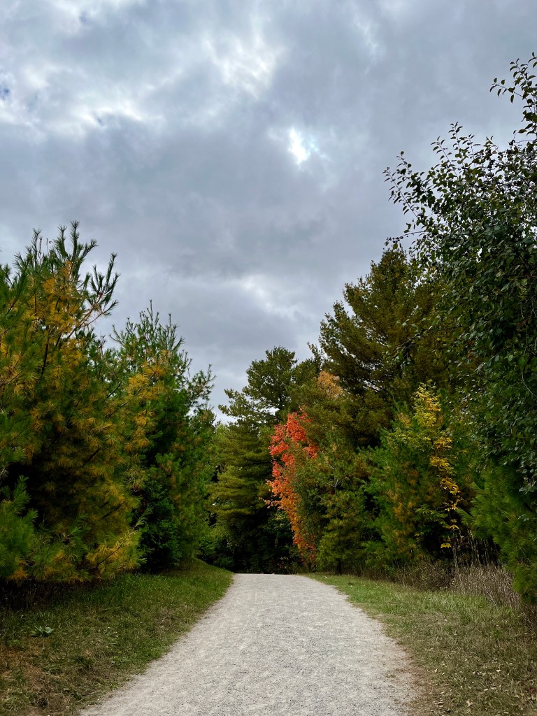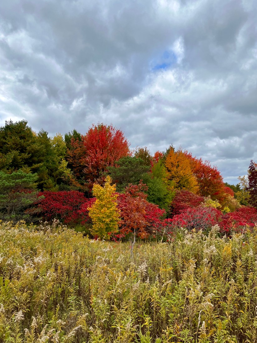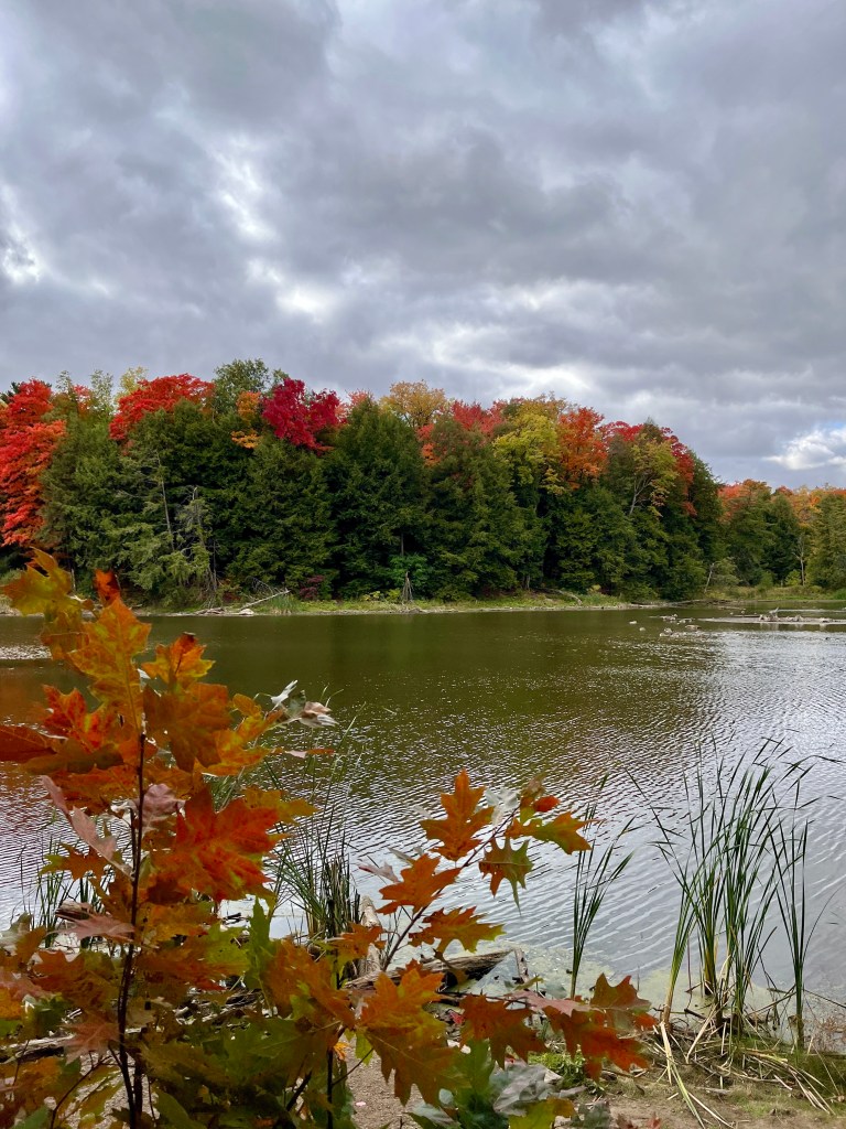 I can’t think of a better moment to enjoy Fall foliage than on an overcast day. The warm hues of the October leaves stand out vibrantly against a blanket of grey clouds.