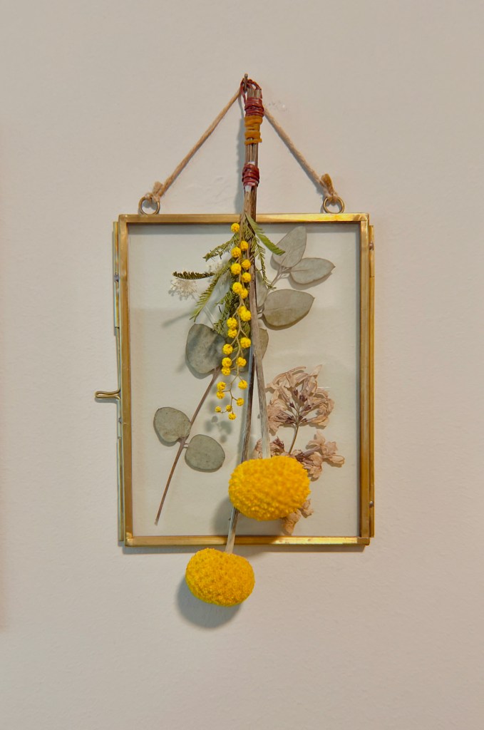 I used my preserved blooms as wall decor over my desk. It made me smile to have drops of yellows in the form of tiny little mimosa flowers and craspedias all around me.