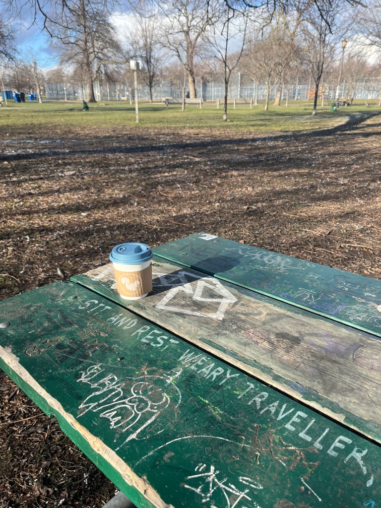 Hot chocolate in hand, I stepped outside and the sun glared on my face. Just like that, the storm was over. I hadn’t packed my sunglasses, so I squinted my way across the street to Trinity Bellwoods Park.