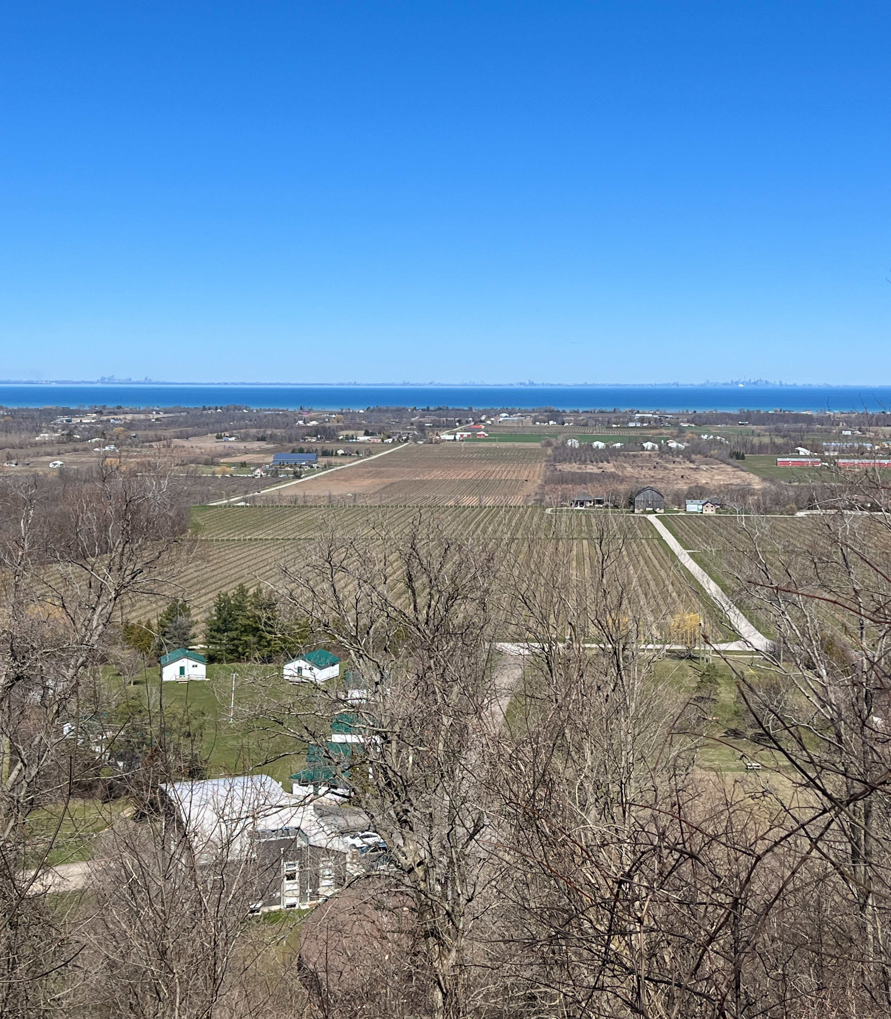 We couldn’t be in the Niagara escarpment region without hiking amongst its surroundings. We followed the Bruce Trail at the Cave Springs Conservation Area, and enjoyed walking along an elevated trail overlooking the vineyards and the bluest Lake Ontario I’ve seen. The sky was so clear that day that you could capture a faraway outline of the Toronto skyline across the lake.