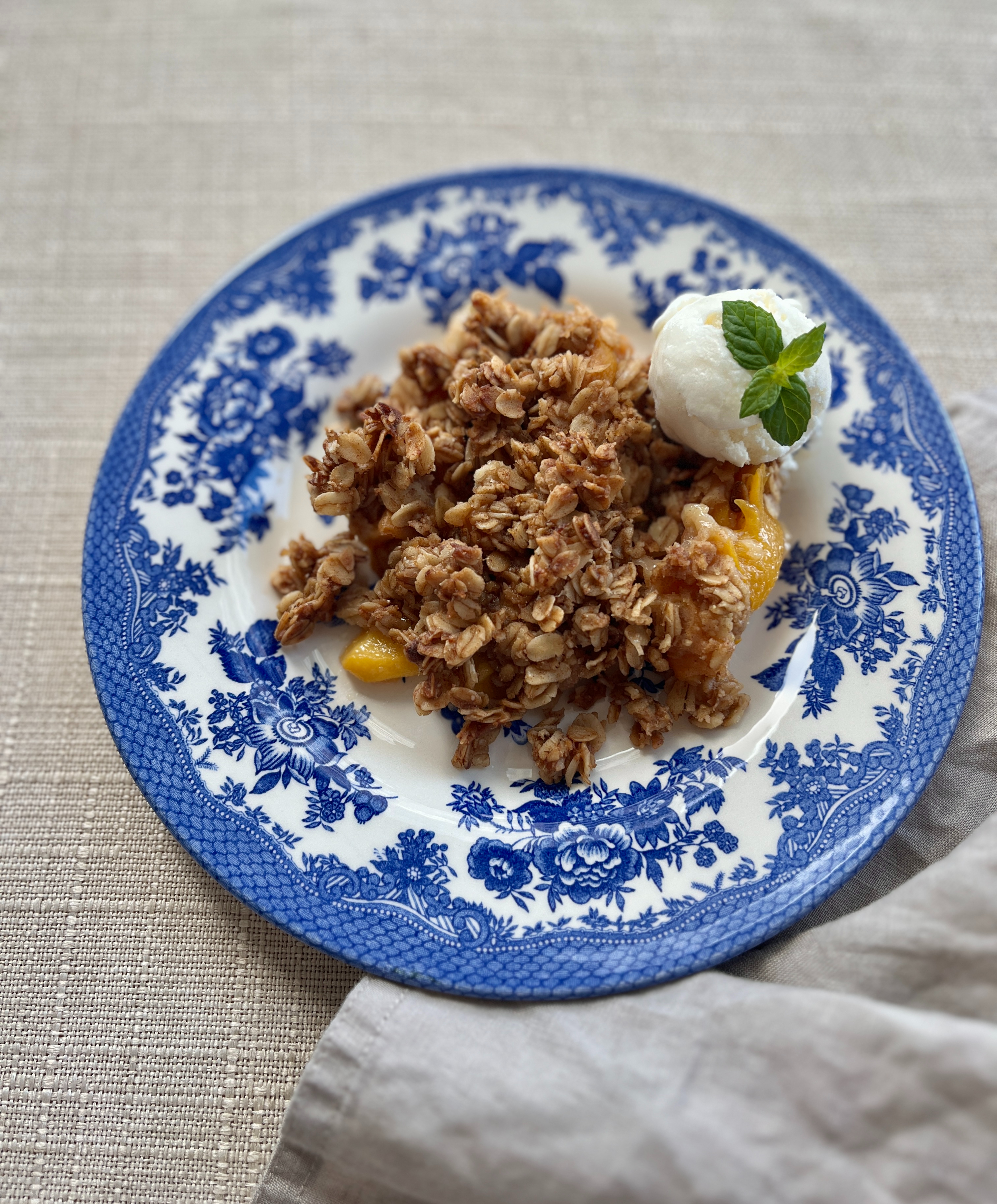 A fulsome life update will be shared soon, but for now, I’d love to bookmark the end of Summer with a seasonal peach crumble recipe.
