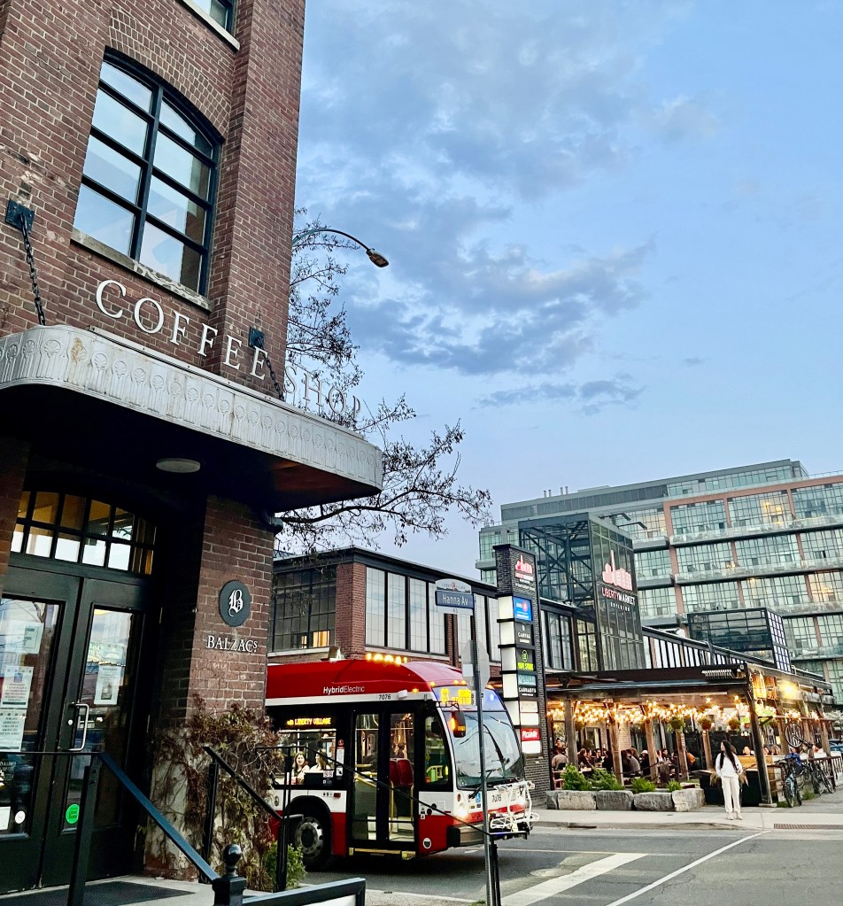 “I see you often on this bus. Do you also work in Liberty Village?”, I asked him.
