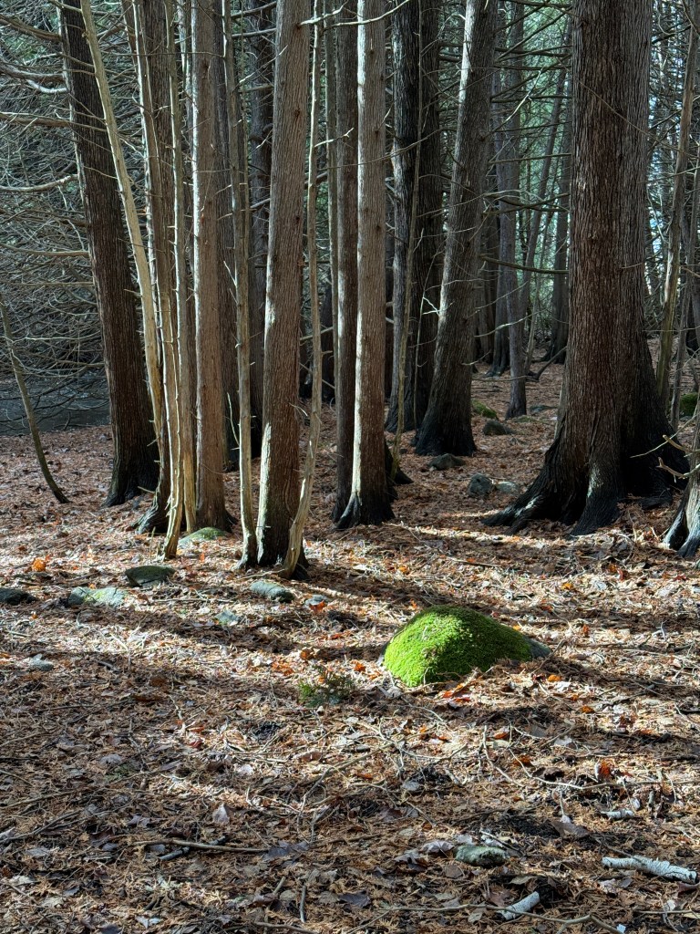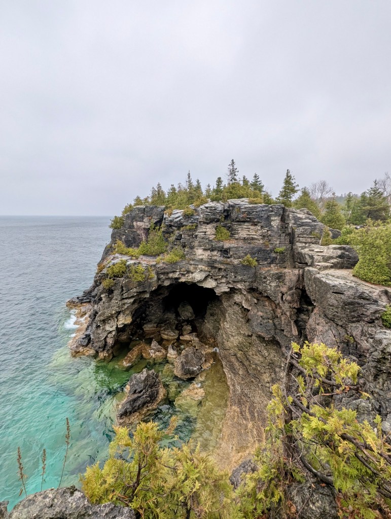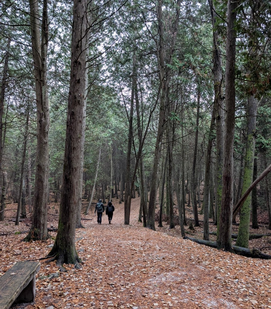 Forests feel like visiting ancestors. When I look at century-old roots enveloped on a rock, I feel like I am surrounded by wisdom, protection and ancient messages of perseverance. In a quiet gloom, an entire escarpment greeted only us as the last remaining visitors. The misty sky blurred the treetops, and honey-coloured leaves landed at their final resting place until the next snowfall hushes the forest and all its inhabitants.