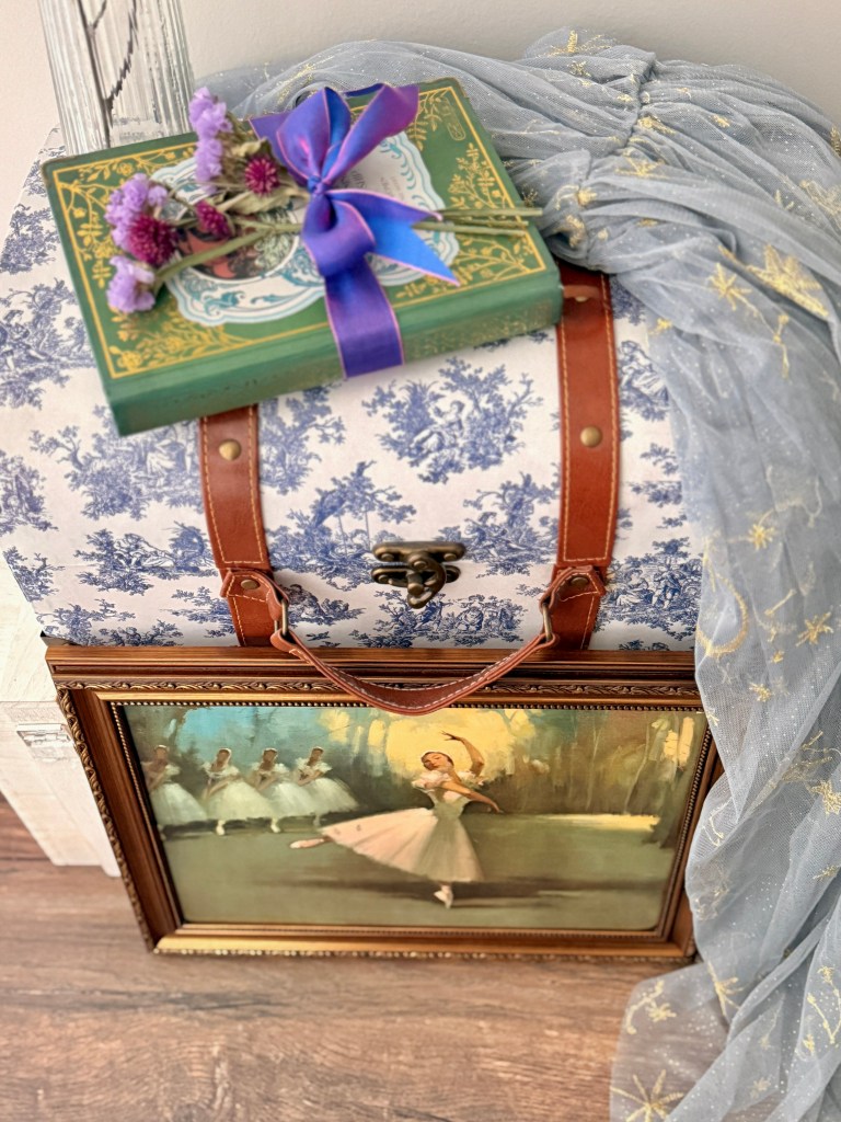 Leaning against my treasure chests, what was once used on someone’s dining table has now been transformed into a framed piece of art – fit for a romantic daydreamer.