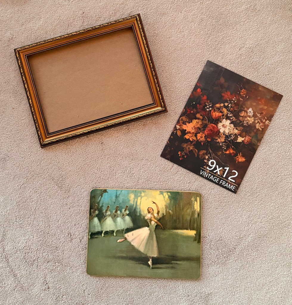 Since my goal was to make it look like a painting, I omitted the glass panel so that the texture could remain exposed. I wanted it to be tactile, scratches and imperfections included. This ballerina has been places, and I didn’t want to conceal any traces of her journey.