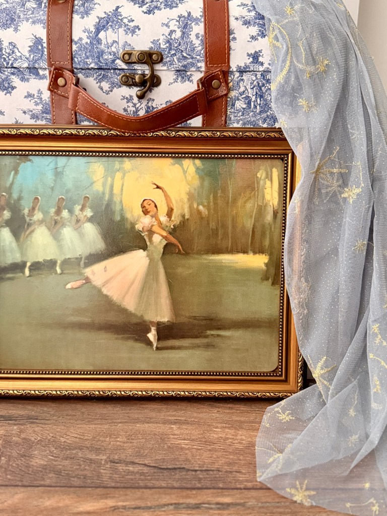 I may have been holding a table accessory in my hand, yet all I could see was this ballerina framed in gold and displayed on a wall.